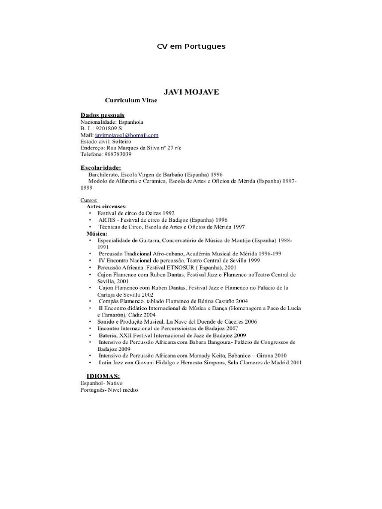 Conforme for preenchendo o curriculum vitae em português vai verificar que várias perguntas podem possibilitar um pouco de floreado a mais. Cv único e atemporal para baixar em formato word e personalizar segundo a oferta a que você queira se candidatar. Tratamento de expedição do correio. Nome e apelidos, morada, data de nascimento e informações de contacto. Informao pessoal apelido(s) / nome(s) prprio(s) morada(s) telefone(s) fax(es) correio(s) electrnico(s) nacionalidade data de nascimento sexo.