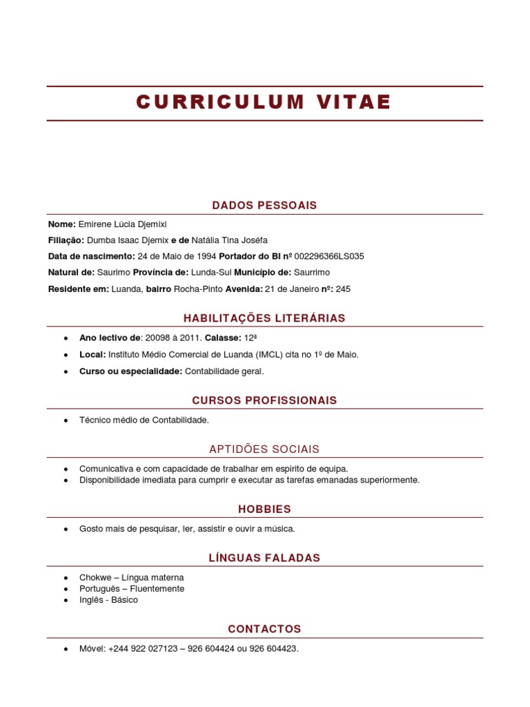 Curriculum vitae simples em português :: O europass disponibiliza informações fiáveis a quem pretende estudar e trabalhar em diferentes países europeus, fornecendo ligações a fontes europeias e nacionais. Há 14 departamentos com resultados relacionados com curriculum vitae.os resultados que aparecem. Prezado(a) sr(a), em busca de novos desafios em posições de direção, apresento meu currículo para a apreciação de v.sas. Este modelo de curriculum vitae gratis em português é ideal para todo tipo de perfil. Je veux recopier les méthodes en lisant ces livres pour trouver un emploi ici exemplos de curriculum vitae em portugues. Para as expressões idiomáticas, ditados populares, expressões em geral. In all such cases, one must be preparing a cv with all information and background in details. Cuidados a ter ao escrever o curriculum vitae em inglês: Licenciatura em alemâo e francês tema da tese: Download curriculum vitae em portugues. É importante que ponha esse floreado de parte, e seja o mais sincero possível. Será que um cv criativo te vai ajudar a ser selecionado?
